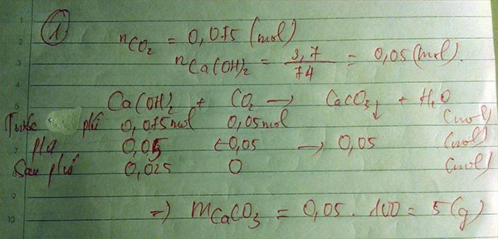 `n_(CO_2)/1` `=` `0,075``>` `n_{Ca(OH)_2}/1` `=` `0,05`