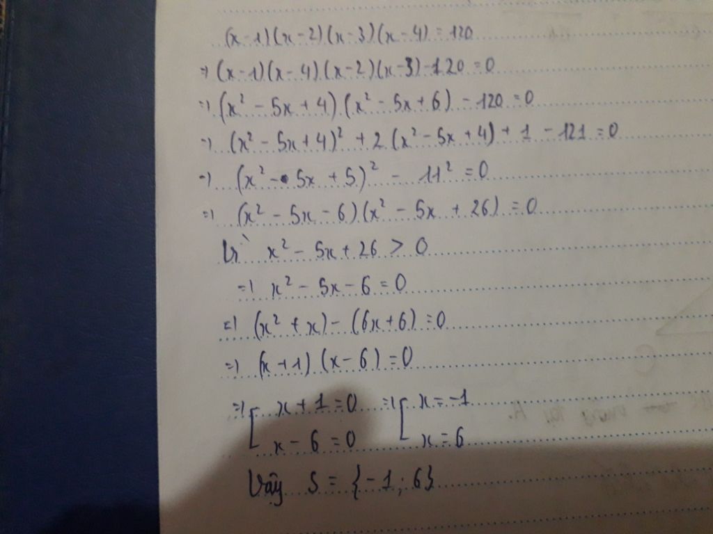 $⇔ [( x - 1 )( x- 4 ) ] [ ( x - 2 ) ( x - 3 ) ] = 120$