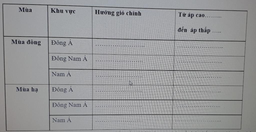 - Từ áp cao đến áp thấp: Áp cao Xibia -> Áp thấp xích đạo Nam Phi