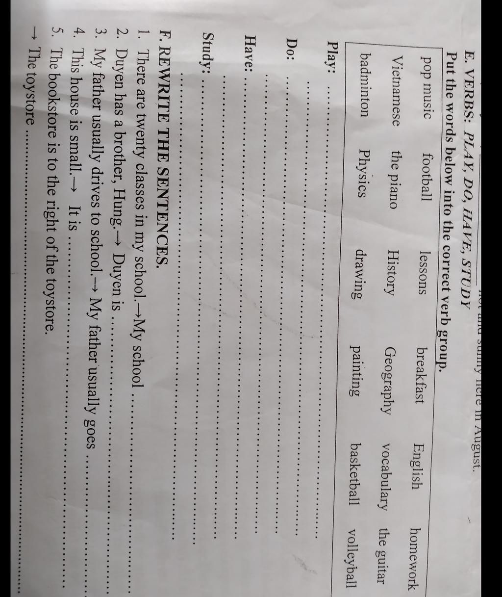 DO: homework, Physics, vocabulary, History, Geography, drawing, painting.