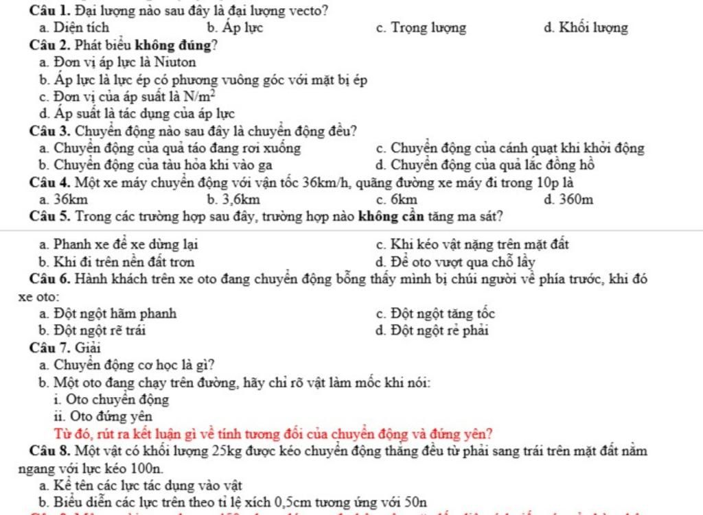 Câu 3. Chuyển động nào sau đây là chuyển động đều? ...