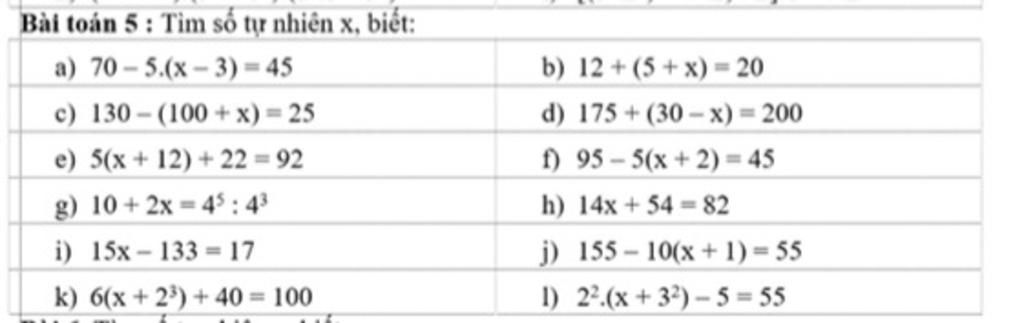 `l, 2^2.(x+3^2)-5=55`