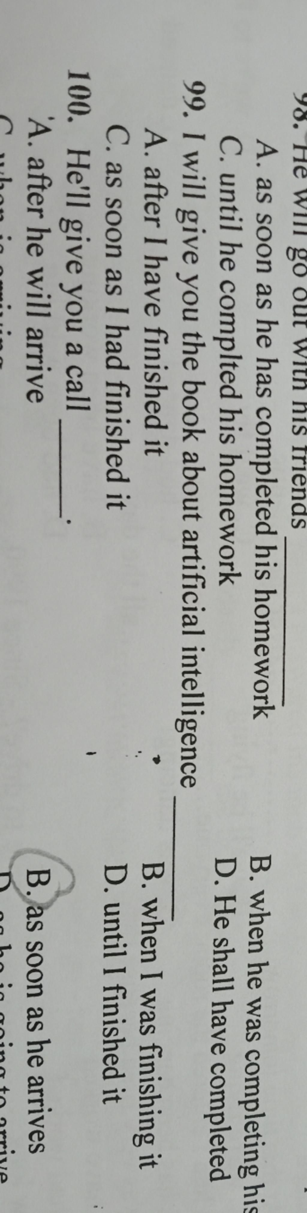 C. as soon as I had finished it D. until I finished it