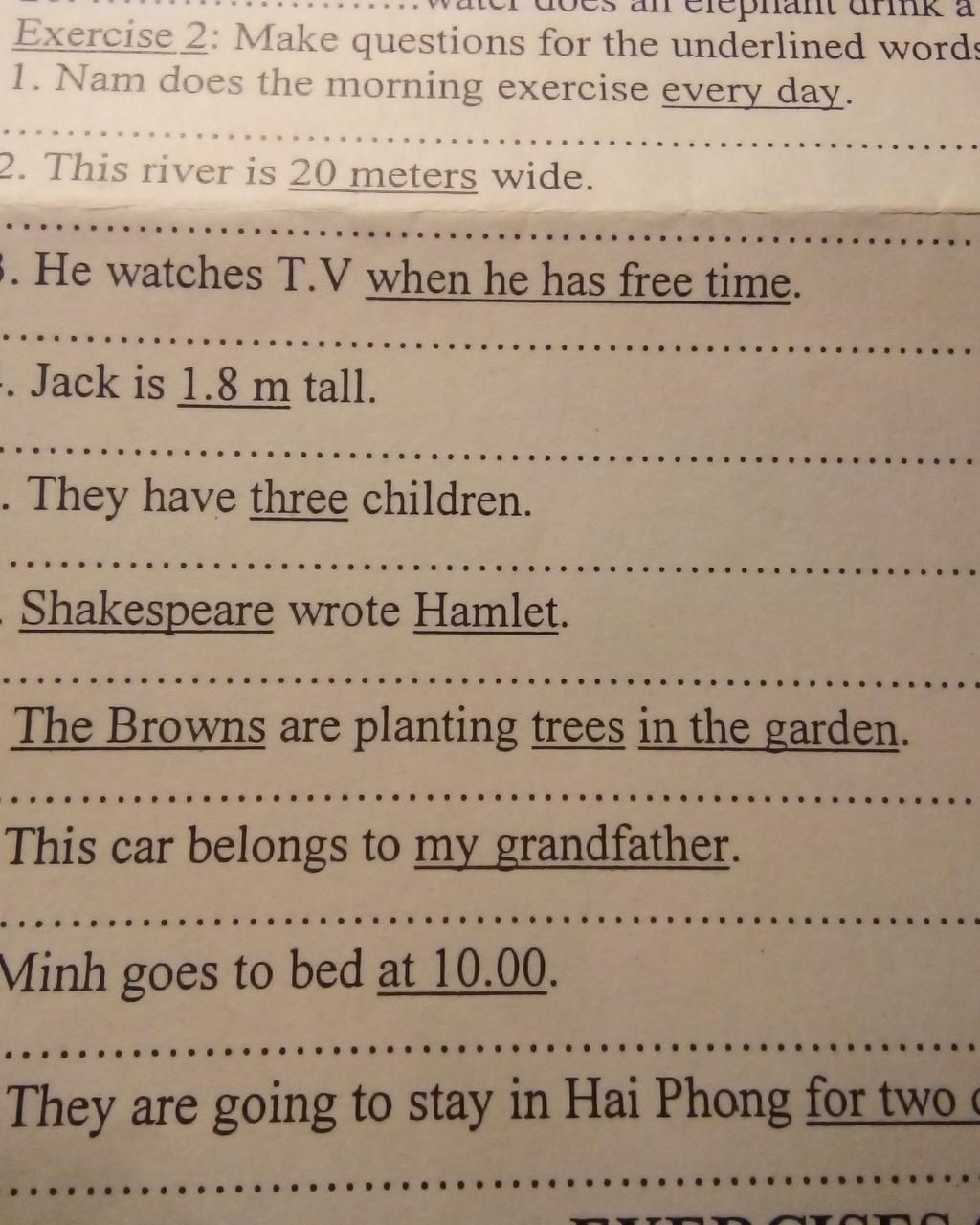 6. Who wrote Hamlet? ( nếu từ gạch chân là Shakespeare.)