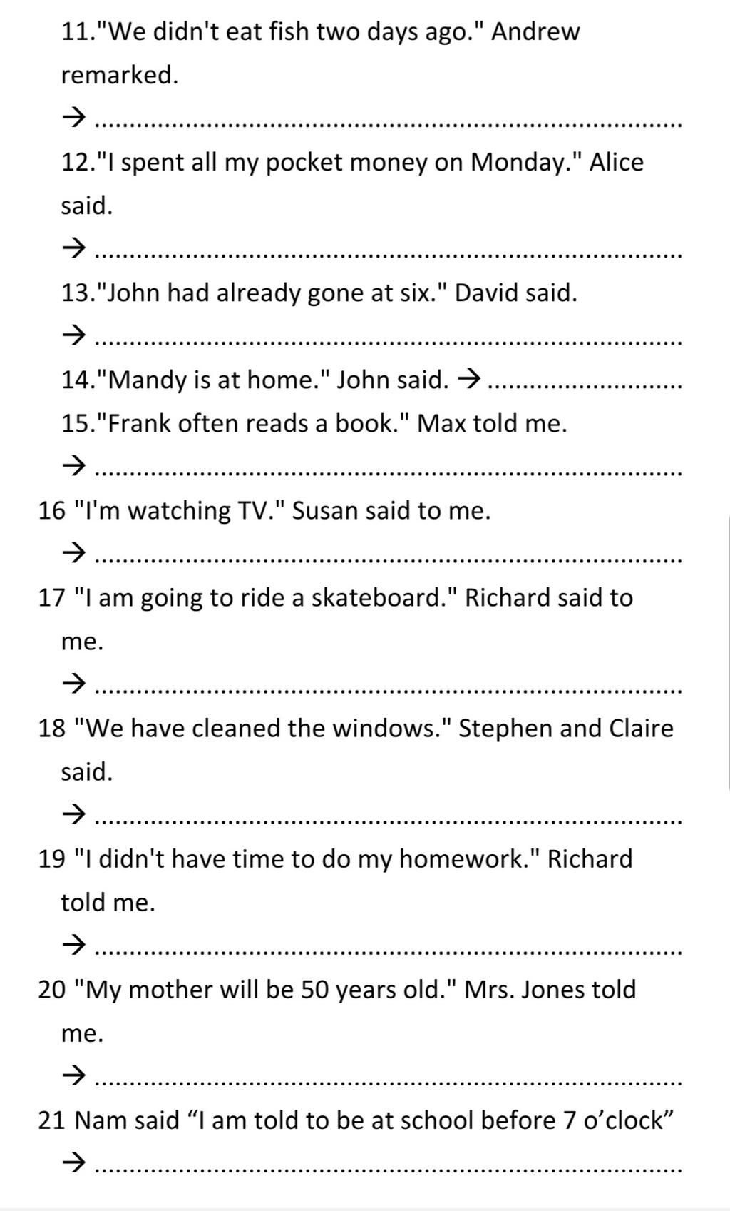 `21`. Nam said that he was told to be at school before 7 o’clock.