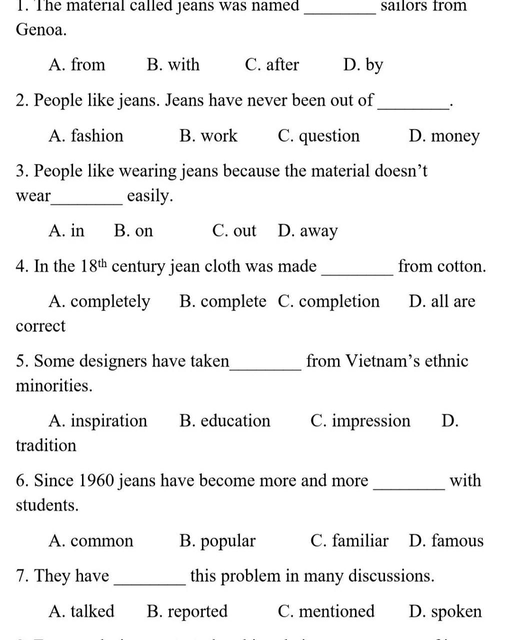 3. People like wearing jeans because the material doesn't