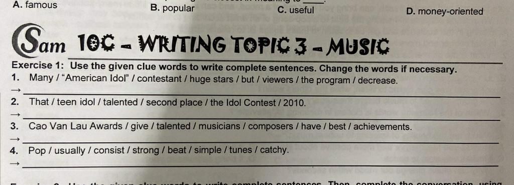 (Sam 10C - WRITING TOPIC 3 - MUSIC