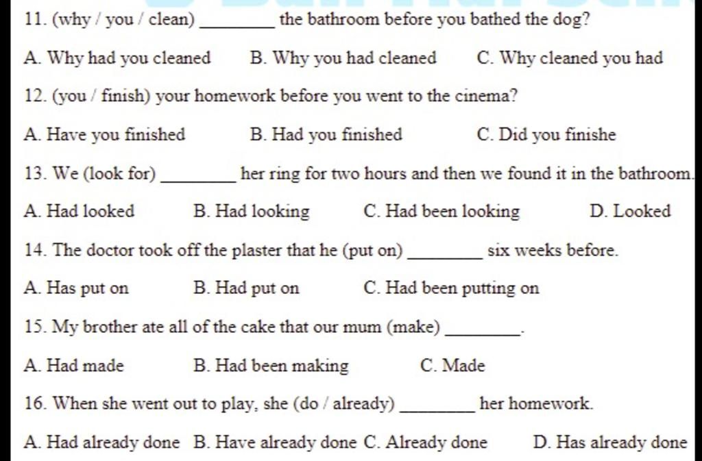 12. (you / finish) your homework before you went to the cinema?
