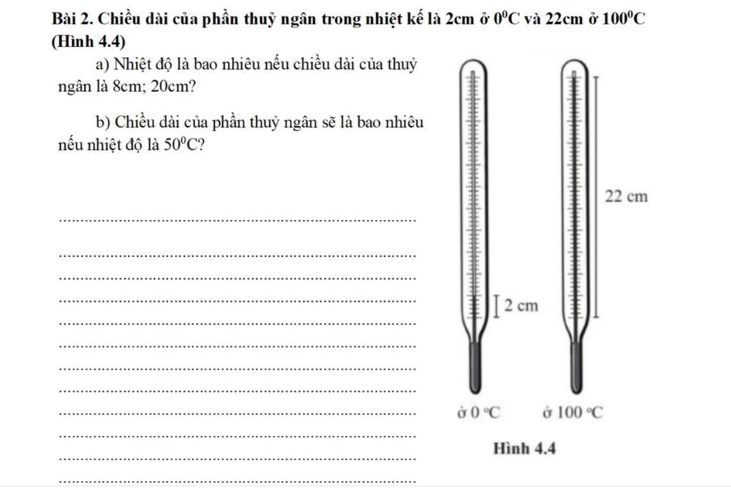 a. Khi chiều dài thuỷ ngân là 8cm thì nhiệt độ là: