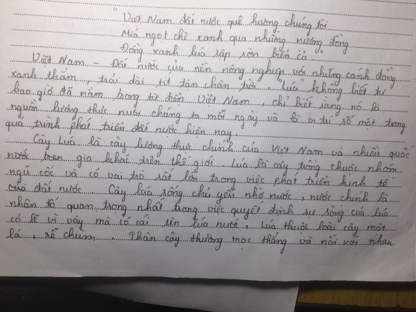 Cây lúa nước Việt Nam thuộc giống lúa châu Á, đến nay, nguồn gốc của loại lúa này vẫn đang là một câu hỏi lớn đối với các nhà nghiên cứu. Những nền văn minh lúa nước đầu tiên của nhân loại như Ấn Độ, Trung Quốc là những nơi được cho là cái nôi của cây lúa nước Việt Nam. Cây lúa nước là loại cây sống trong môi trường nước ngọt, nhiều phù sa bồi đắp, phân bố chủ yếu ở vùng Đồng Bằng sông Hồng và đồng bằng sông Cửu Long. Cây lúa có đường kính từ 2 – 3cm, cao từ 60 – 80cm. Thân lúa chia làm ba bộ phận chính: rễ cây, thân cây và và ngọn. Rễ cây là cơ quan hấp thụ chất dinh dưỡng và nước từ đất, thân cây với chức năng vận chuyển, trao đổi chất để đưa tới ngọn cây. Từ ngọn cây sẽ nảy mầm thành những hạt lúa. Hạt lúa trổ sẽ có màu vàng, gọi là hạt thóc bên ngoài là lớp vỏ trấu cứng, tiếp theo là lớp màng mỏng bảo vệ hạt gạo, gọi là cám gạo, bên trong cùng là hạt gạo trắng ngần. Khi hạt lúa chín đủ độ, người ta gặt cả cây lúa ngoài đồng, mang về tuốt lấy hạt, trải qua quá trình xay xát, phơi nắng để trở thành hạt gạo hoàn chỉnh. Vụ mùa lúa ở Việt Nam có hai mùa chính: đông – xuân và hè – thu. Khi đến mùa, người nông dân bắt đầu làm đất, cày xới xới cho đất trở nên tơi xốp, dẫn nước nguồn vào ruộng lúa để trữ nước cho sự phát triển của cây, nhổ cỏ dại, gốc rạ còn tồn đọng từ mùa lúa trước Nước là một trong những yếu tốt quan trọng nhất trong việc gieo trồng lúa. Sau khi gieo mạ, lứa mạ xanh sẽ đâm chồi. Gieo mạ phải gieo bằng tay, mật độ vừa phải, gieo thẳng hàng, thẳng lối. Tiếp theo là bước bón phân, cải tạo đất để kích thích cây lúa phát triển. Một cây lúa khỏe mạnh không chỉ phụ thuộc vào giống lúa, mà còn do cung cách chăm sóc, bón tưới phù hợp với mục đích và tình trạng đất. Trong cả một mùa lúa, người nông dân phải liên tục bổ sung nước, làm cỏ, diệt trừ sâu bệnh, loài gặm nhấm, chim chóc phá hoại mùa màng. Lúa chín có thể thu hoạch bằng tay hoặc bằng máy, tuốt lúa lấy hạt và để lại rơm, rạ. Cây lúa cho hạt gạo, nguồn thực phẩm chính của người dân Việt Nam. Để phục vụ cho nhu cầu người tiêu dùng, trên thị trường có rất nhiều những loại gạo khác nhau, những giống lúa được nuôi trồng, lai tạo khác nhau. Từ hạt gạo, chúng ta có thể nấu thành cơm, xay bột gạo làm ra những loại bánh cổ truyền. Hạt gạo cũng là nguyên liệu để tạo ra bánh đa, phở, bún,… Hầu hết tất cả các bộ phận của cây lúa đều có thể sử dụng trong đời sống. Lớp vỏ trấu bên ngoài hạt gạo có thể làm thức ăn cho gia cầm, dùng để ủ ấm ổ gà, ổ vịt, hay ủ thành phân bón cho cây trồng. Phần thân lúa sau khi đã tróc hết hạt lúa được dùng làm rơm, rạ đốt bếp, phục vụ nhu cầu nấu nướng hoặc sưởi ấm, của con người. Rơm, rạ từ thân lúa còn có thể đan, bện, tết thành chổi, rễ và những vật dụng trang trí khác. Đối với kinh tế, Việt Nam là một nước nông nghiệp điển hình với diện tích nông thôn vượt trội so với đô thị. Ngành nông nghiệp lúa nước đóng góp cho kinh tế Việt Nam từ nguồn lợi xuất khẩu gạo, làm nguồn thu chính cho nông dân, cung cấp lương thức cho đại bộ phận nhân dân trong nước. Về mặt tinh thần, cây lúa là biểu tượng của đất nước Việt Nam, gắn liền với cuộc sống của người dân. Cây lúa xuất hiện trong quốc huy Việt Nam với ý nghĩa là nòng cốt phát triển. Trong thơ ca nhạc họa, hình ảnh cây lúa gắn liền với tuổi thơ của nhiều người như bài thơ Hạt gạo làng ta của Trần Đăng Khoa hay những câu ca dao tục ngữ quen thuộc: