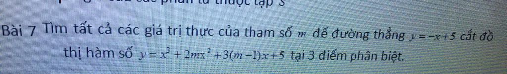 Phương trình hoành độ giao điểm của đường thẳng $y=-x+5$ và đồ thị hàm số $y=x^3+2mx^2+3(m-1)x+5$ là: