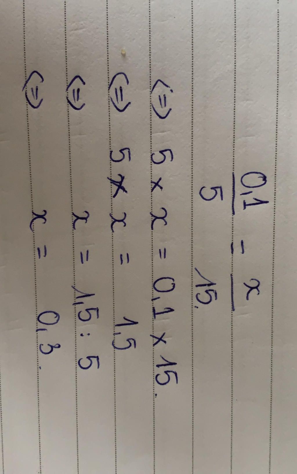 $\frac{0,1}{5}$ = $\frac{x}{15}$