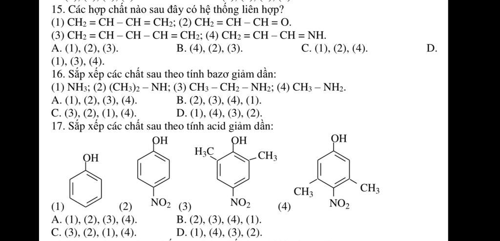 15. Các hợp chất nào sau đây có hệ thống liên hợp?