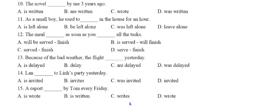 Đây là câu bị động ở thời quá khứ bởi vì thời gian là "3 years ago". Câu bị động trong quá khứ có công thức là "was/were + P2". Ở đây, chủ ngữ "the novel" là danh từ số ít nên phải chọn "was", P2 của write là written. Vậy ta có đáp án là "was written"