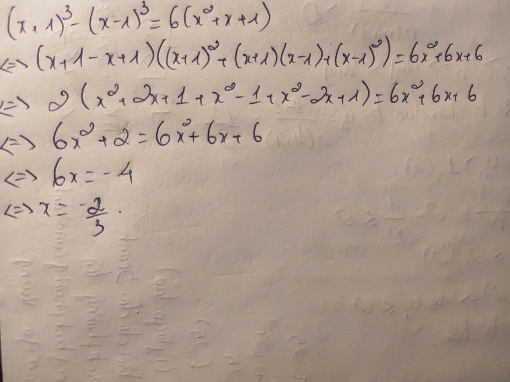 ⇔x³+3x²+3x+1-x³+3x²-3x+1-6(x²+x+1)=0