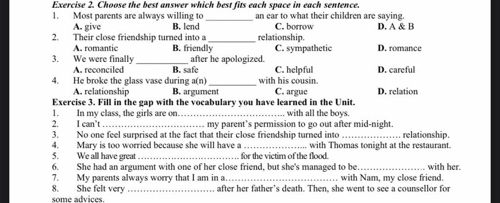 Exercise 2. Choose the best answer which best fits each space in each sentence.