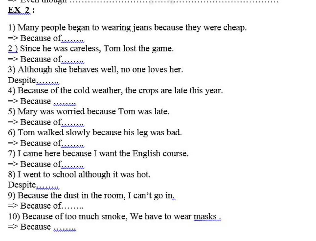 `-` Because `+` clause, clause `=` Because of `+` N/V`-`ing, clause : bởi vì