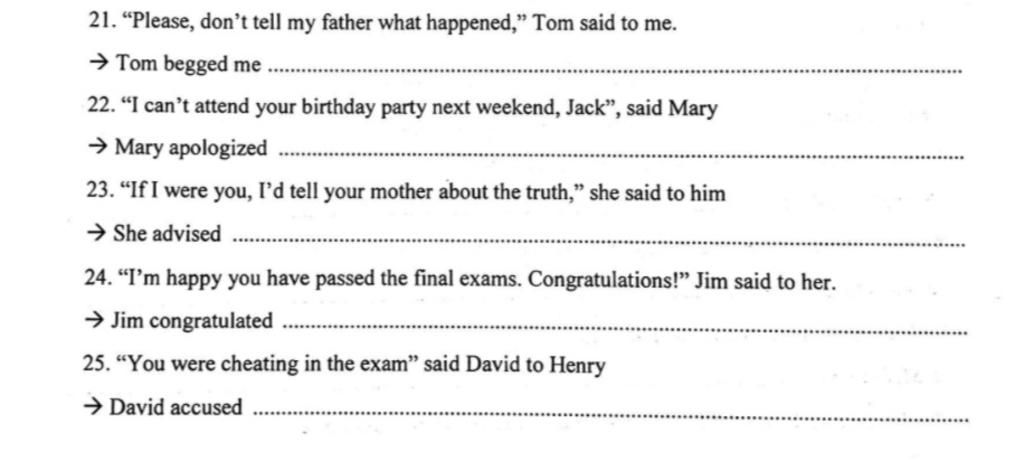 `22.` Mary apologized to Jack for attening his birthday party next week.