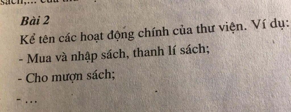 Bài 2 Kế tên các hoạt động chính của thư viện.