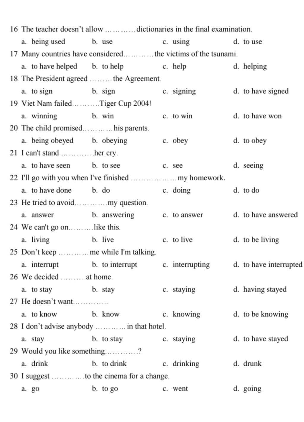 23. b (avoid Ving: tránh làm gì)