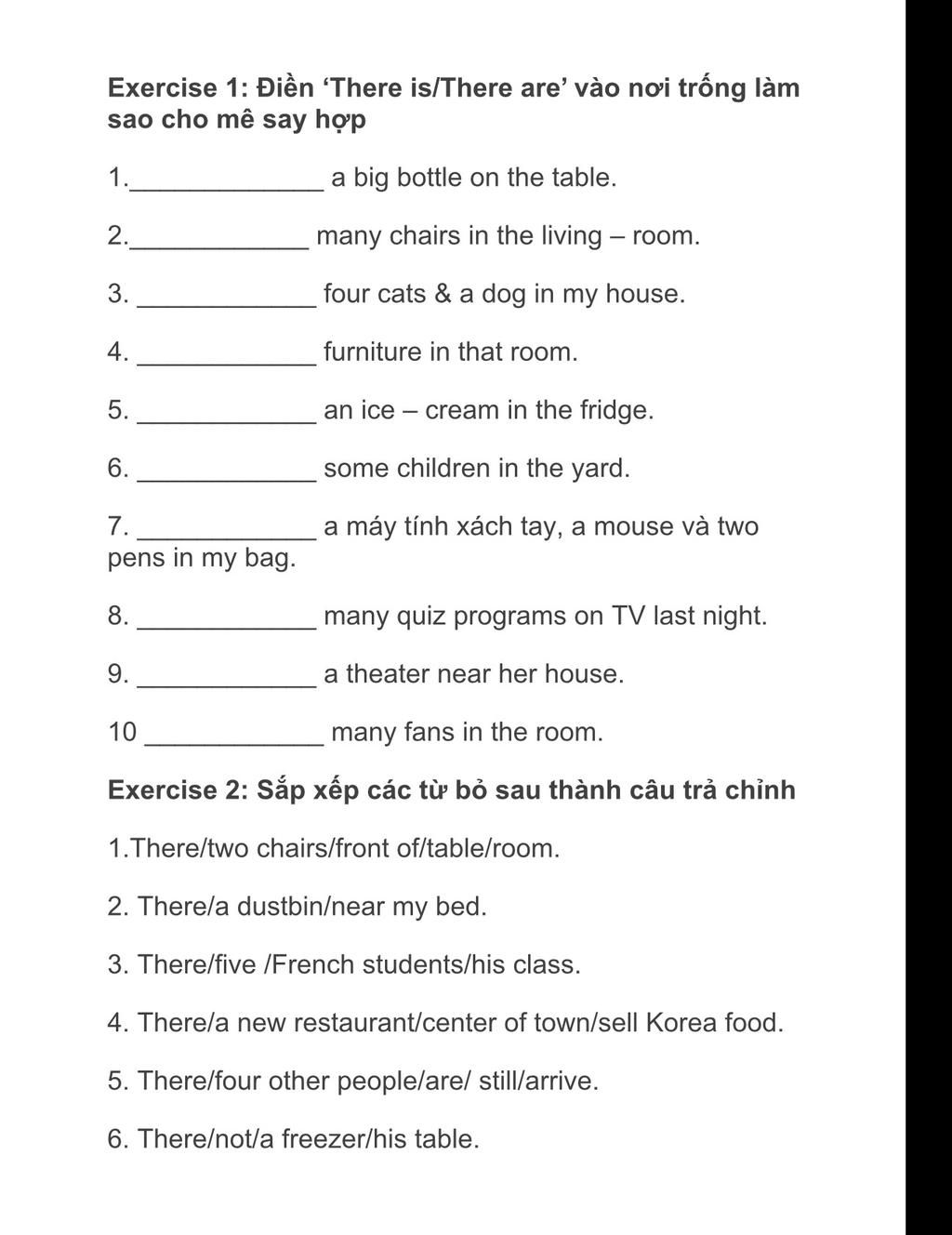 Bài này ta cũng sẽ thêm is hoặc are nhé!