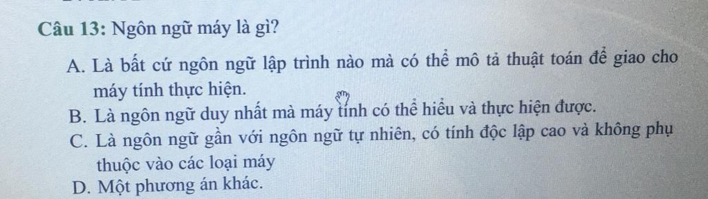⇒ Đáp án : B. Ngôn ngữ duy nhất mà máy tính có thể hiểu và thực hiện được