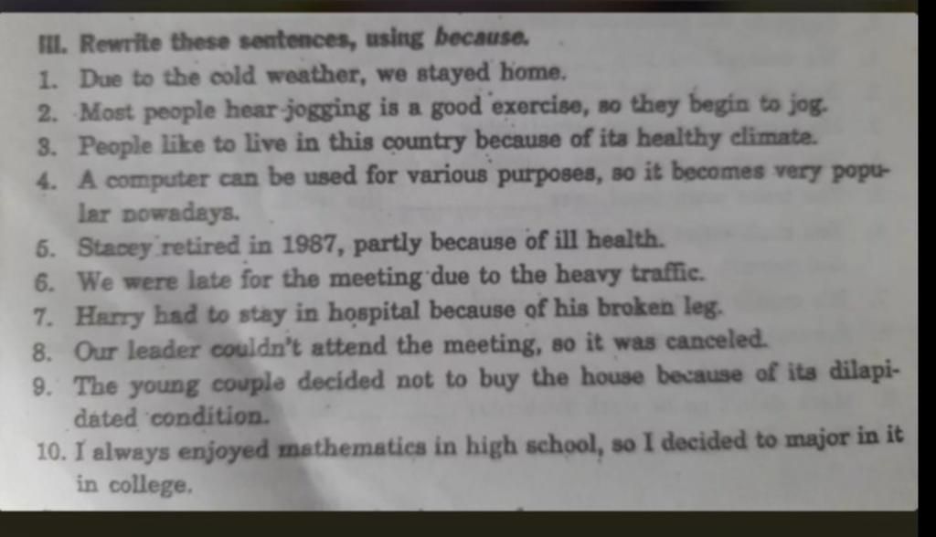 6. Becasue the traffic is heavy, we were late for the meeting.