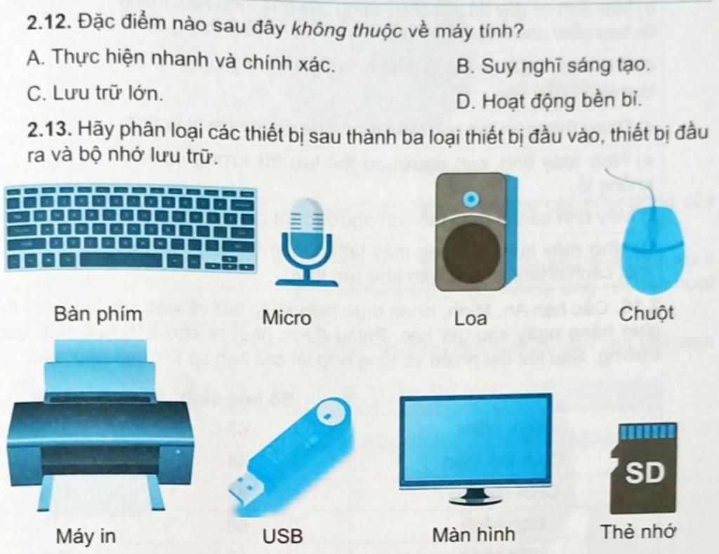 Hoạt động không thuộc về máy tính là: Suy nghĩ sáng tạo.
