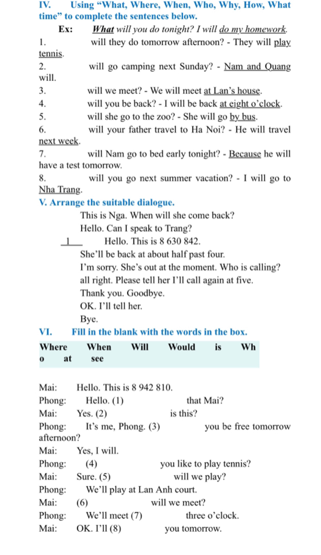 This is Nga. When will she come back?