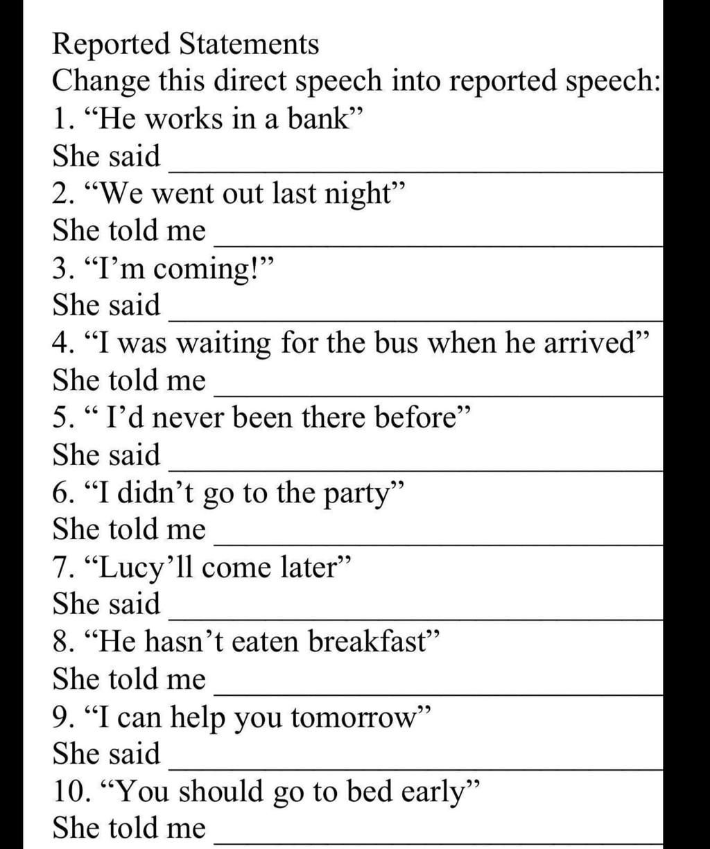 1/She said that he worked in the bank.