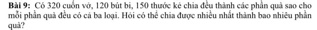 -> ƯCLN ( 320,120,150) = 2 x 5 = 10 -> x = 10