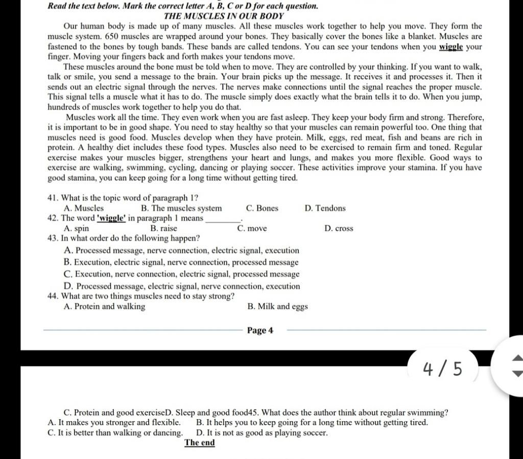 44. C (One thing that muscles need is good food.....getting tired)