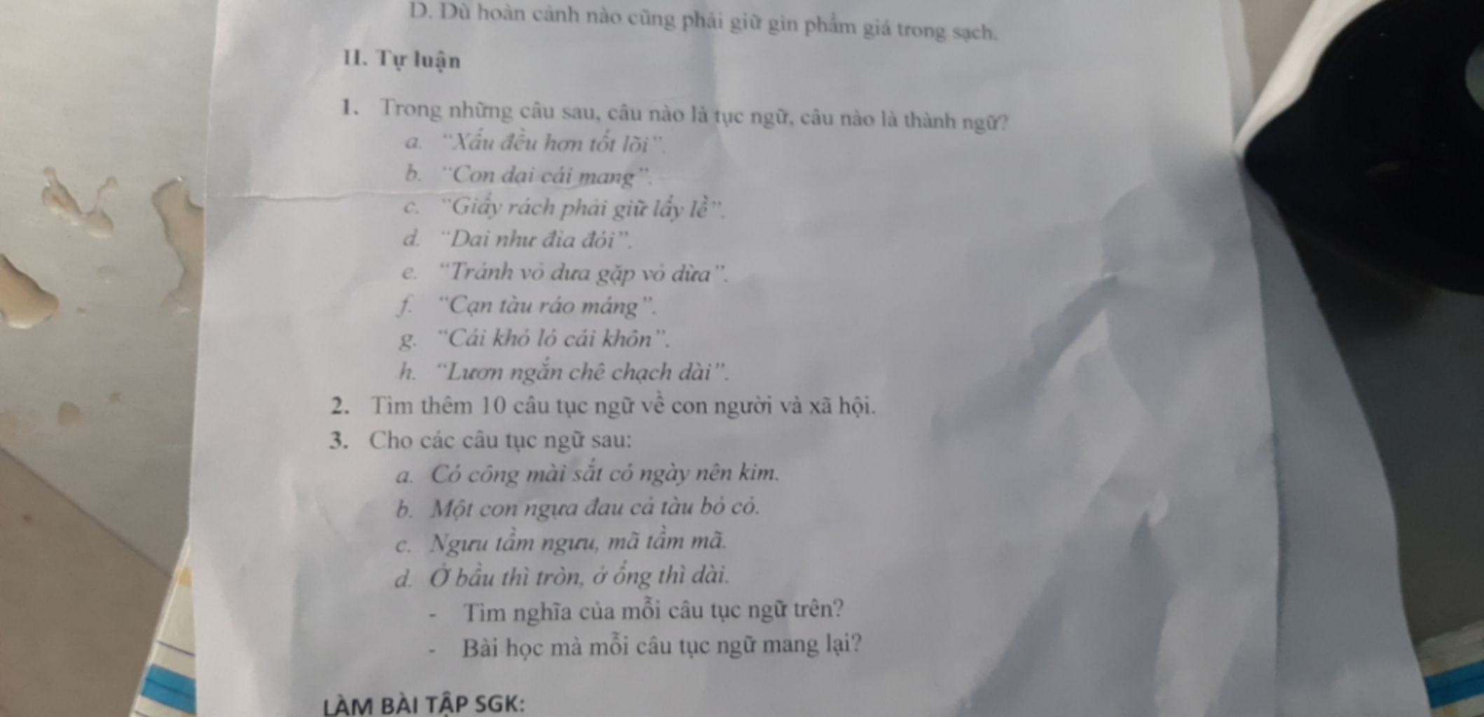 Tục ngữ : b,c,f,g