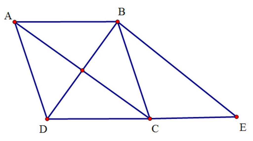 Khi đó ``BE = AC = 15cm;` `CE = AB = 5cm.`