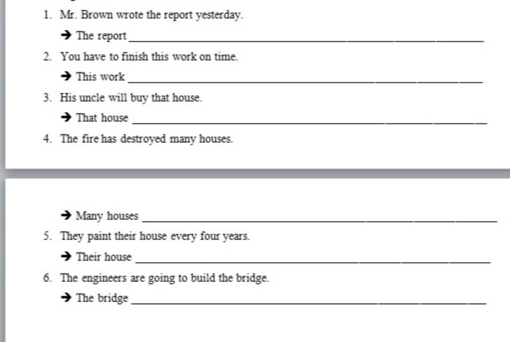 `=>` Câu bị động thì hiện tại hoàn thành : S + has / have + been + Vpp + ( by + O )