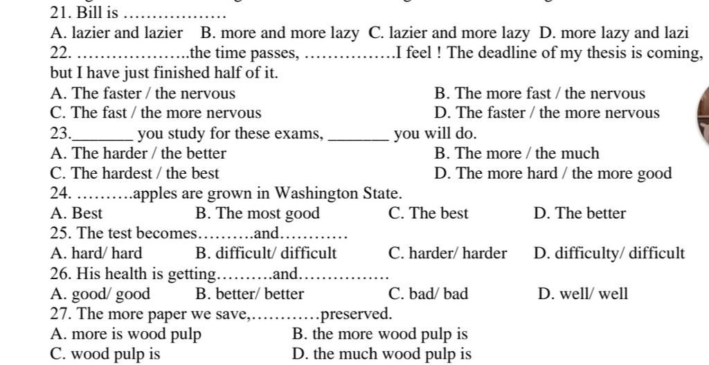 A. lazier and lazier B. more and more lazy C. lazier and more lazy D. more lazy and lazi
