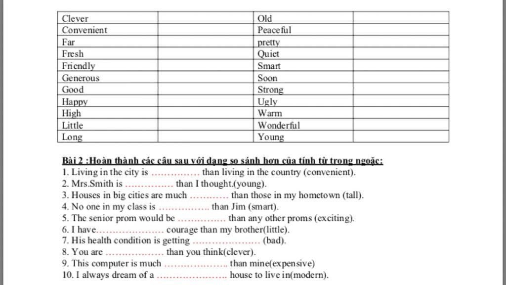 * Những tính từ kết thúc bằng đuôi " le, ow, er, et " thì có thể vừa thêm -er, -iest vào sau hoặc thêm more, the most vào trước tính từ. ( Vd như câu 8 ở trên )