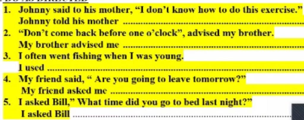 5. I asked Bill what time he went/had gone to bed the previous night.