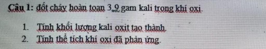 1) ta có : $n_{K}$ = `m/M=`$\dfrac{3,9}{39}`=$0,1` (mol)