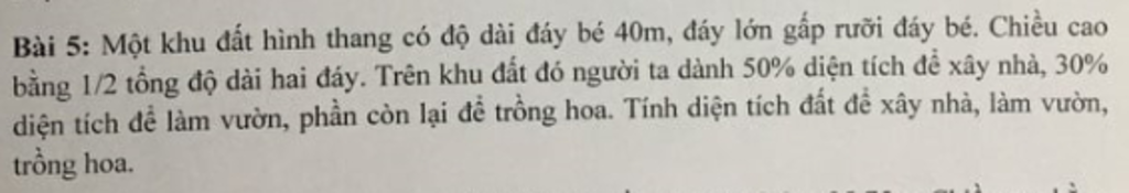 ta có đáy lớn gấp rưỡi đáy bé nên đáy lớn là 40+20=60m