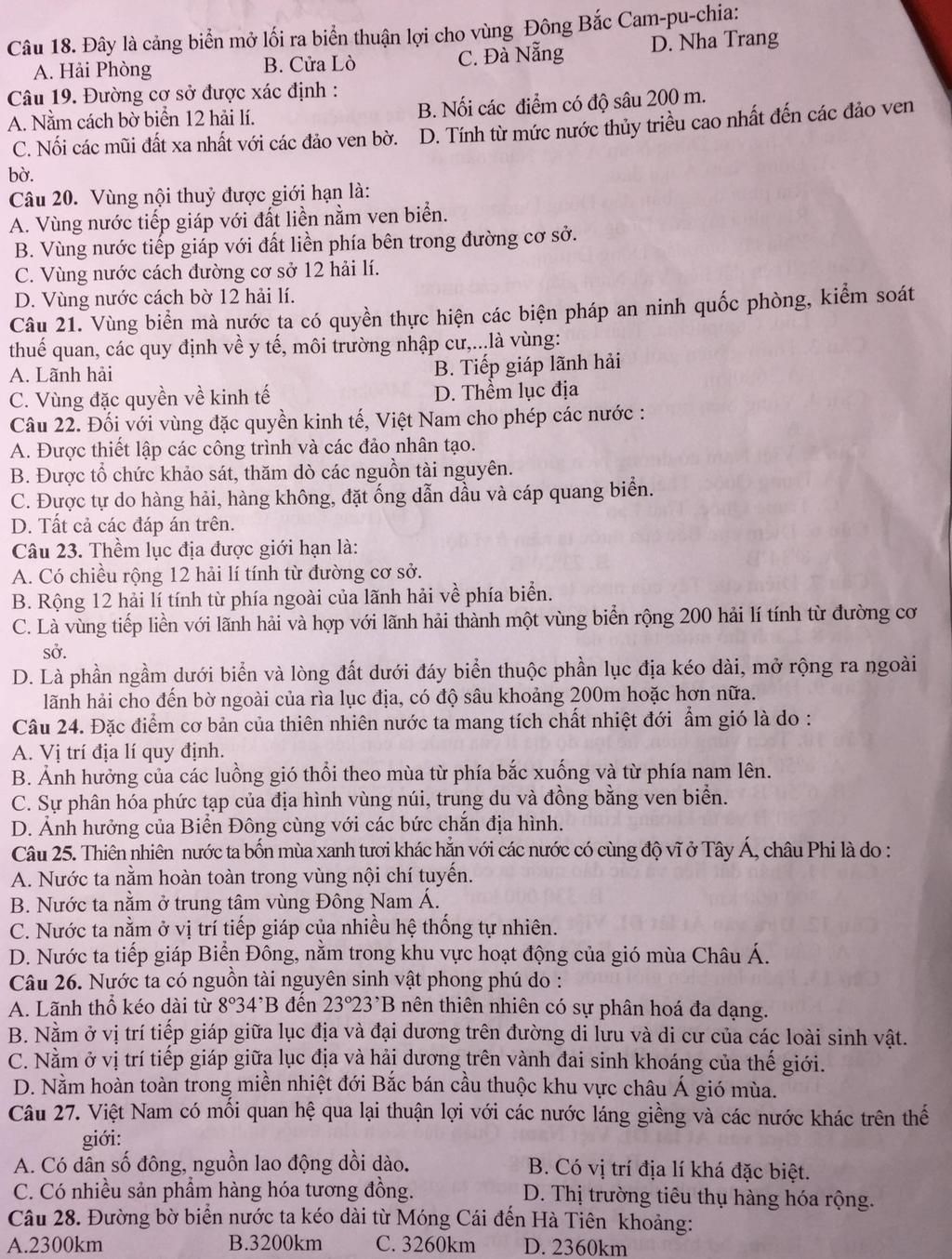 Câu 18. Đây là cảng biến mở lối ra biển thuận lợi cho vùng Đông Bắc Cam-pu-chia: