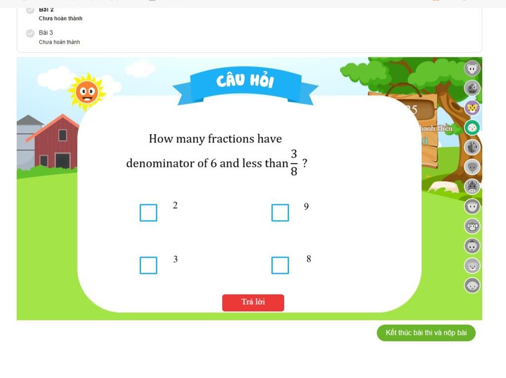 Dịch đề: Có bao nhiêu phân số có mẫu số là $6$ và nhỏ hơn `3/8 ?`