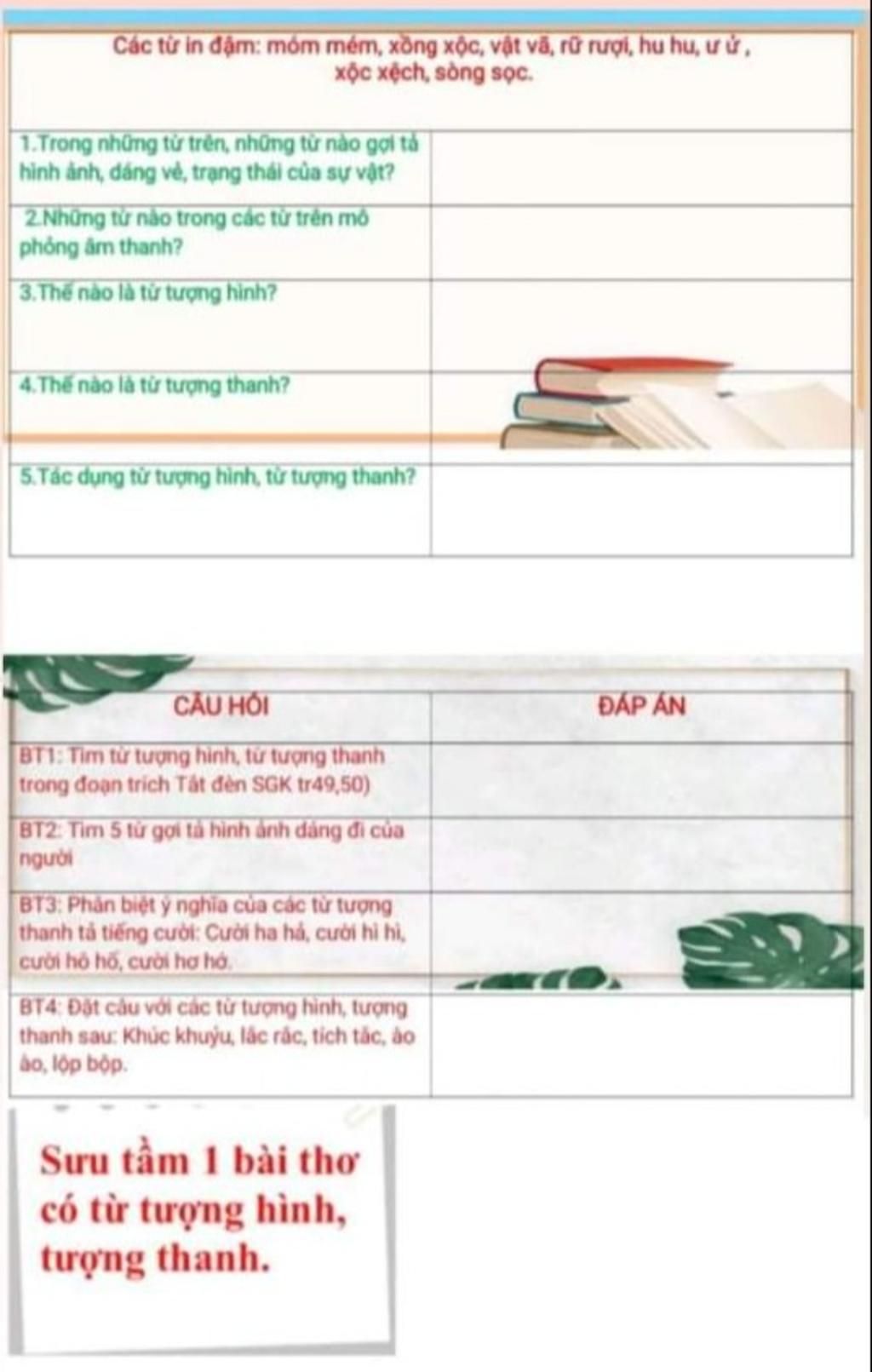 BT1: Tim từ tuợng hinh, từ tượng thanh trong đoạn trích Tát đèn SGK tr49,50)