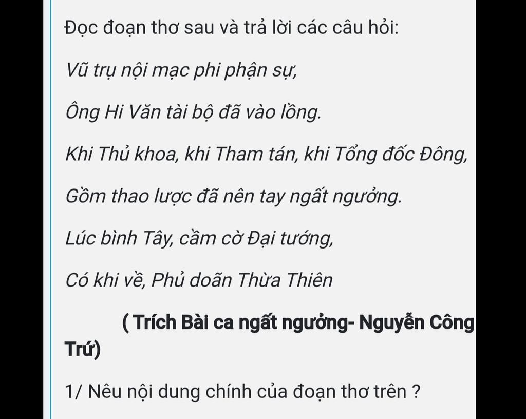 => Nội dung chính : Ngất ngưởng khi làm quan : Lối sống phóng khoáng , ngang tàng , chán nản con đường quan trường và khẳng định năng lực bản thân