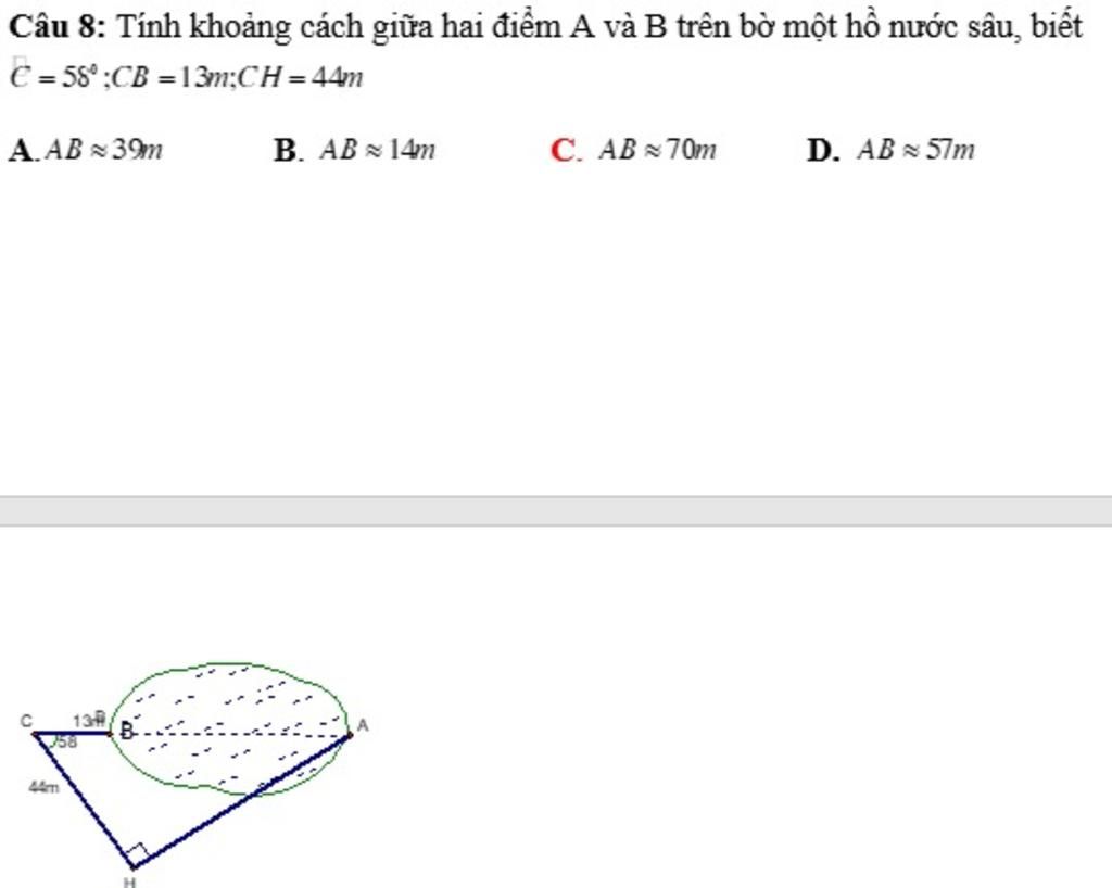 cos $58^o$ = $\frac{44}{AC}$ (Thay số)