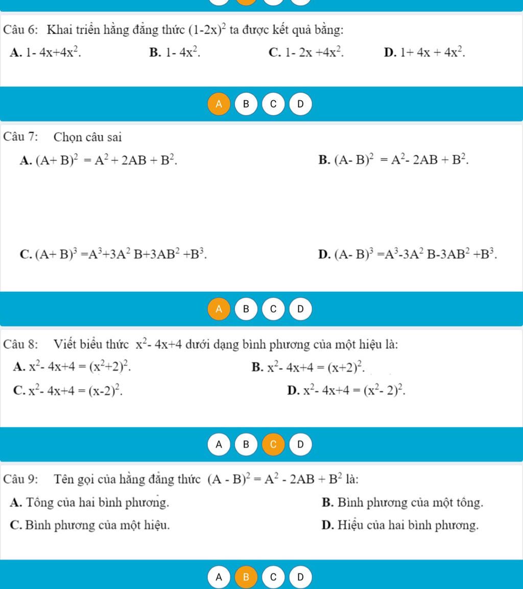 `\text{(A - B)}^2 = \text{A}^2 - 2\text{AB} + \text{B}^2` là bình phương của một hiệu