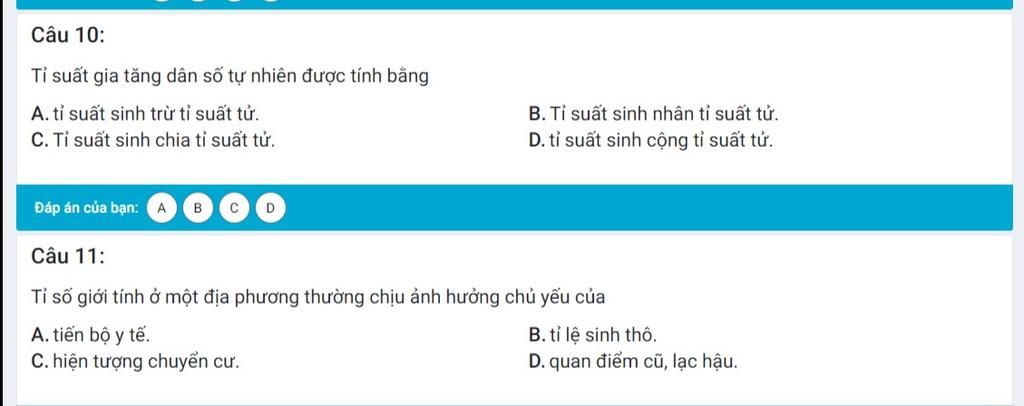 => Tỉ số gia tăng dân số tự nhiên được tính bằng Tỉ suất sinh chia suất tử