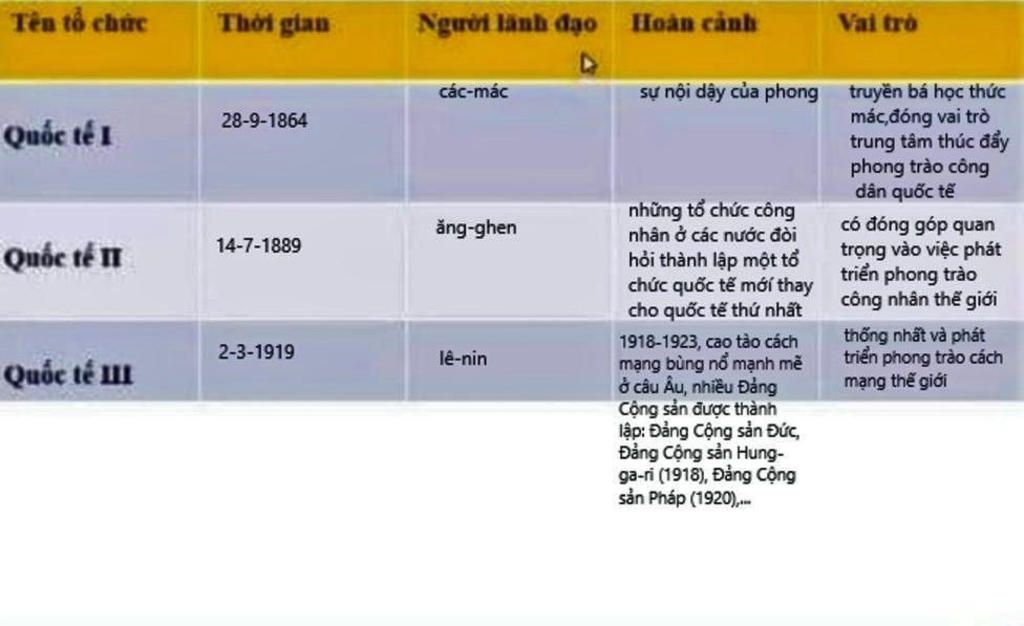 hoàn cảnh: 1918-1923, cao tào cách mạng bùng nổ mạnh mẽ ở câu Âu, nhiều Đảng Cộng sản được thành lập: Đảng Cộng sản Đức, Đảng Cộng sản Hung-ga-ri (1918), Đảng Cộng sản Pháp (1920),...