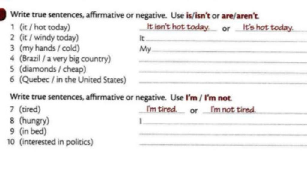 2. It is windy today, It isn't windy today
