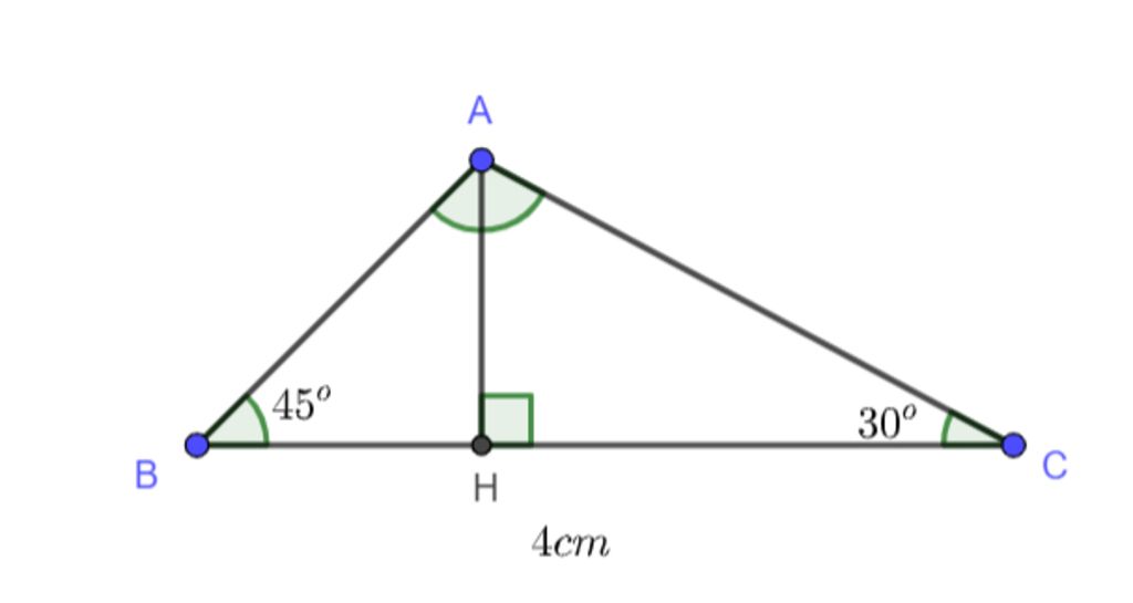 hay `BH = AH =` `frac{4}{1 + √3}` `≈ 1,5 (cm)`